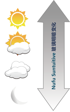 当太阳直射到玻璃上时,Nafu Suntuitive会随着外侧玻璃表面温度的上升而逐渐变暗;随着太阳光的减弱,Nafu Suntuitive会降温并恢复到清澈状态。如果是晚上或阴天,没有太阳照射,Nafu Sutuitive是清澈透明的。